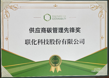 10月23日,联化科技荣获“2025年度TfS携手可持续发展供应商碳管理先锋奖”,体现了公司在碳排放管理与可持续发展方面的持续努力,获得了客户与行业的高度认可。
